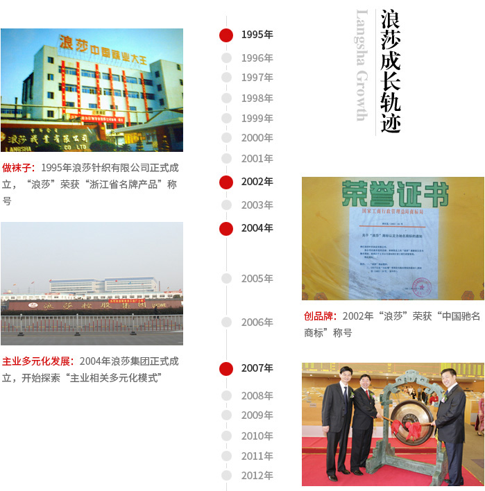 浪莎成立于1995年,是目前國(guó)內(nèi)襪子專(zhuān)業(yè)生產(chǎn)企業(yè),也是行業(yè)內(nèi)響亮的品牌企業(yè)。2008雖是金融風(fēng)暴引發(fā)的企業(yè)困難之年,但浪莎還是以40%的業(yè)績(jī)?cè)鲩L(zhǎng),實(shí)現(xiàn)銷(xiāo)售額5億美金。經(jīng)過(guò)二十一年的發(fā)展。在國(guó)內(nèi),人們提起襪子,就會(huì)想到浪莎,想起浪莎,就會(huì)想到那句經(jīng)典的廣告詞:浪莎,不只是吸引!
