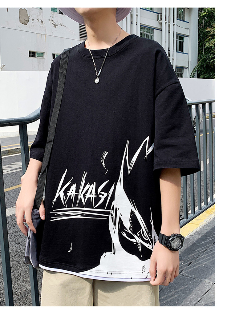 純棉舒適】夏季新款男士圓領短袖時尚火影印花半袖T恤