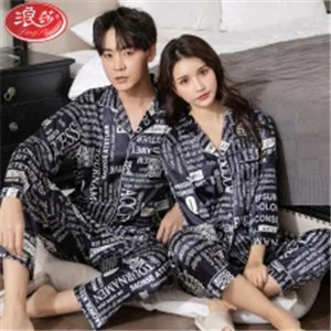 浪莎春夏季新款情侶睡衣韓版長袖仿真絲時(shí)尚開衫家居服冰絲套裝