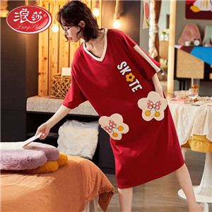 浪莎秋季純棉睡裙韓版可愛清新甜美寬松時(shí)尚睡裙女舒適長袖可外穿