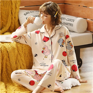浪莎純棉睡衣女春秋款長袖開衫可愛少女學(xué)生全棉家居服兩件套裝