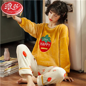 浪莎睡衣女冬珊瑚絨法蘭絨長袖卡通可愛加厚保暖秋冬家居服套裝