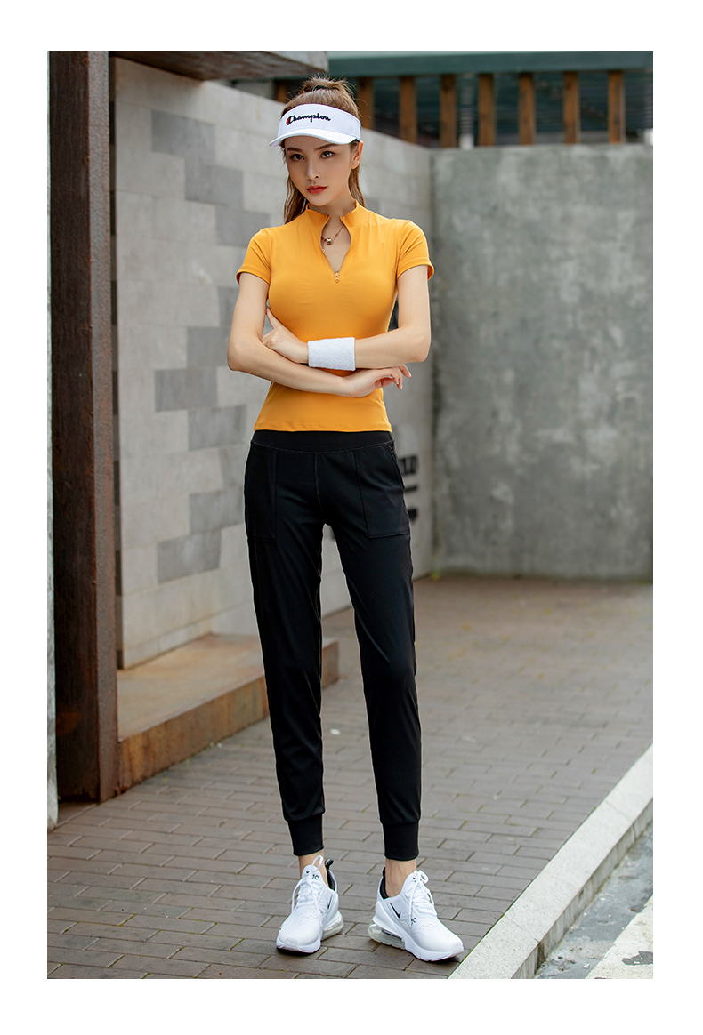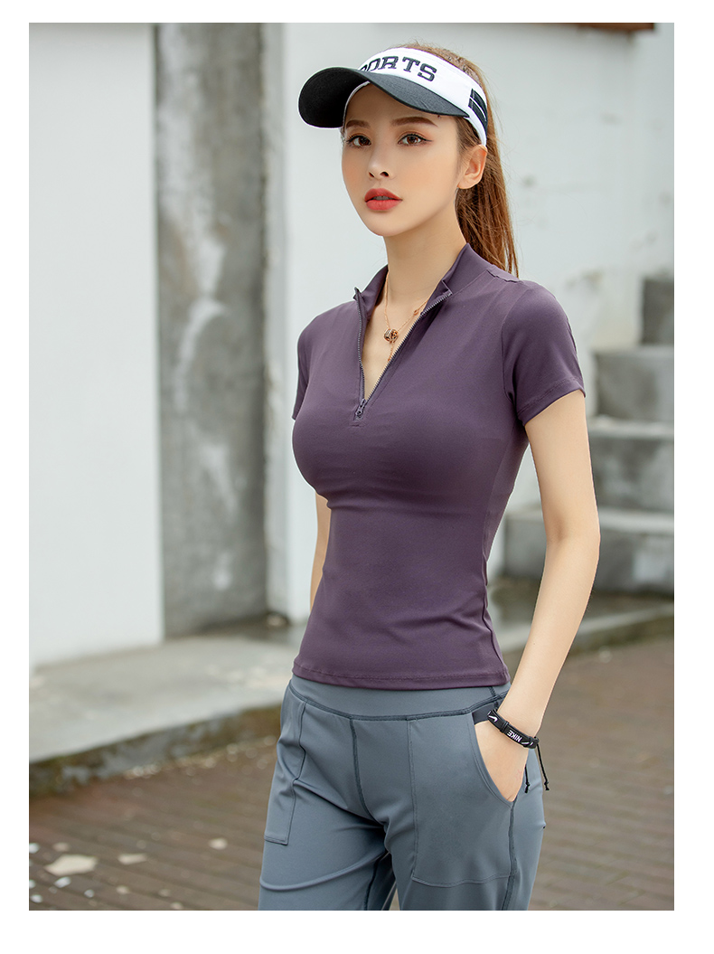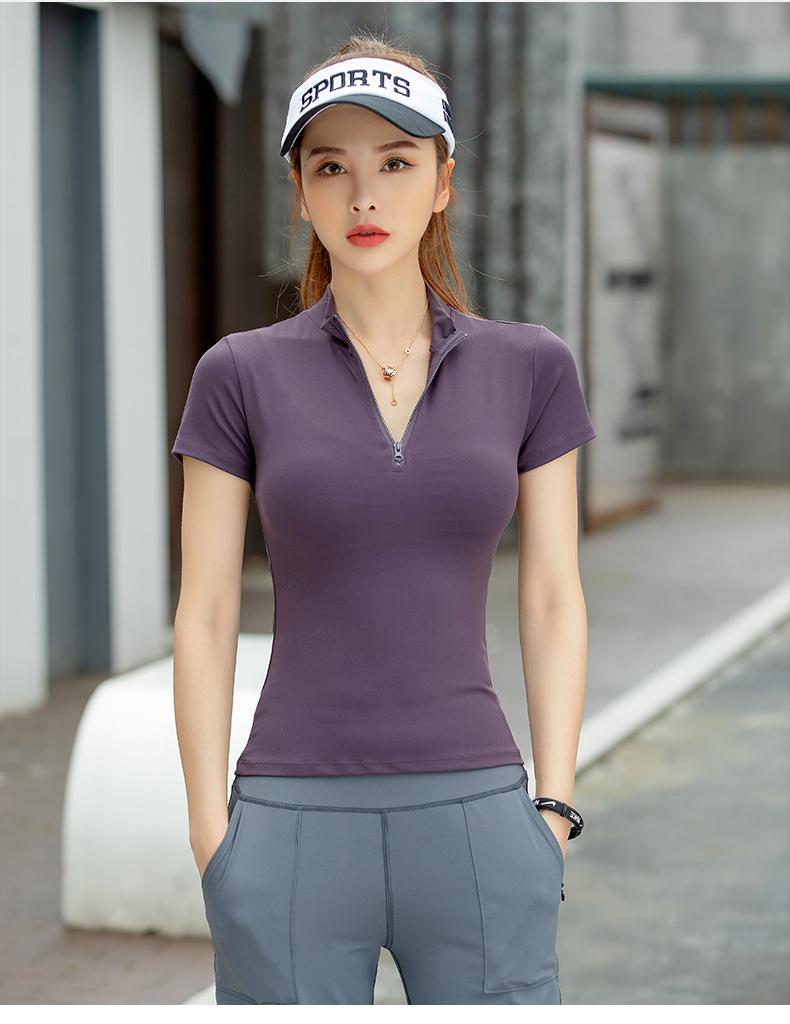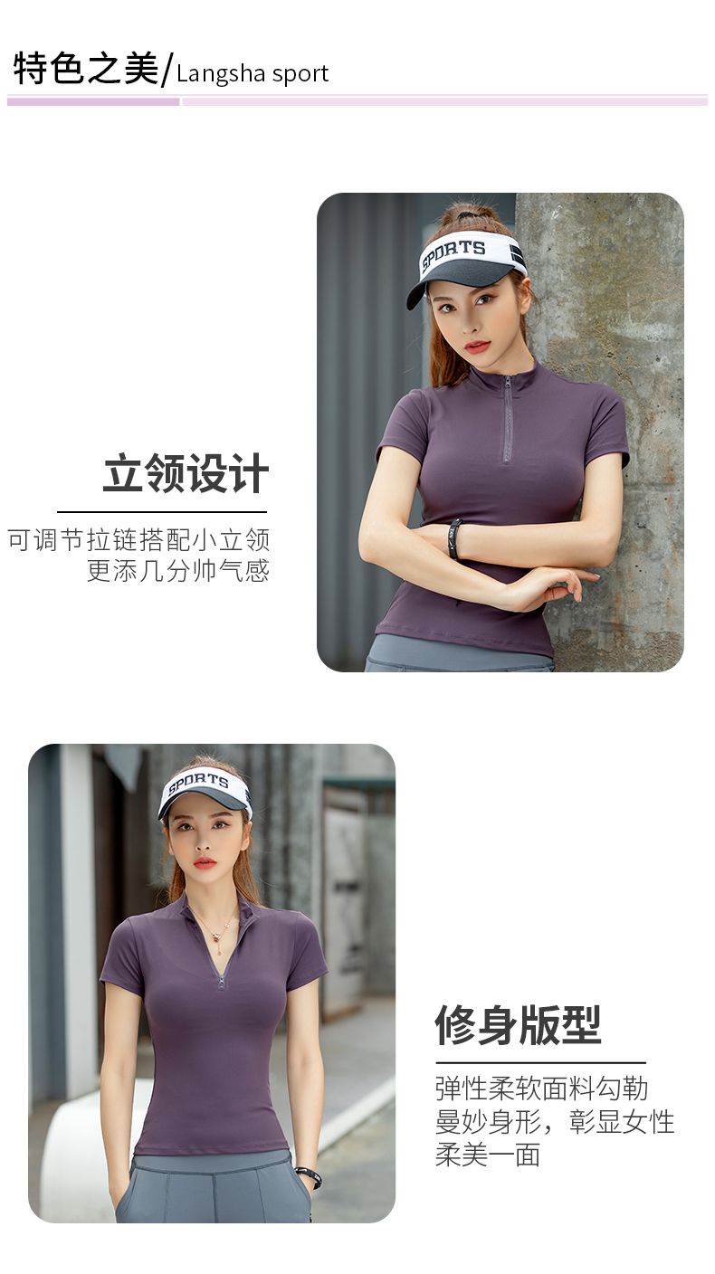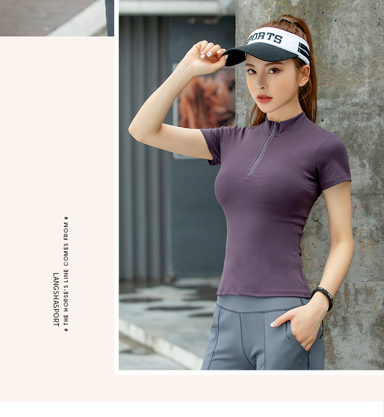 浪莎運動短袖女速干透氣緊身夏季性感V領瑜伽健身服跑步上衣T恤