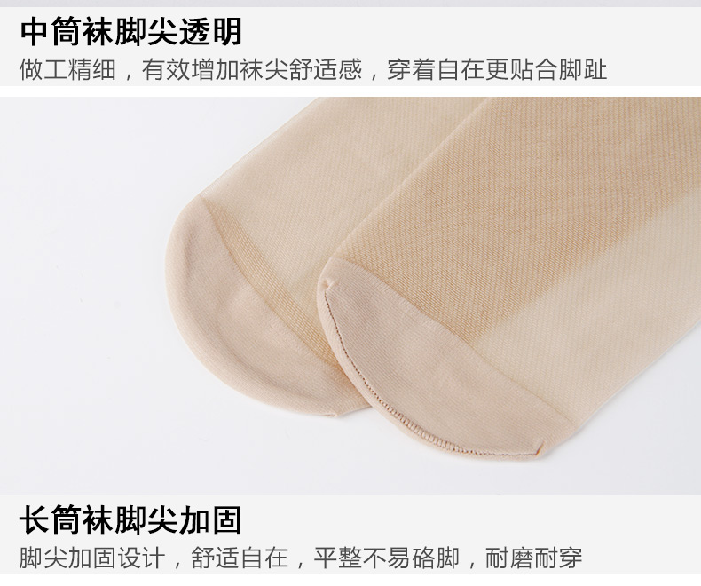 浪莎絲襪女 夏天腳尖透明中筒襪 防勾絲過膝長筒襪薄款小腿襪