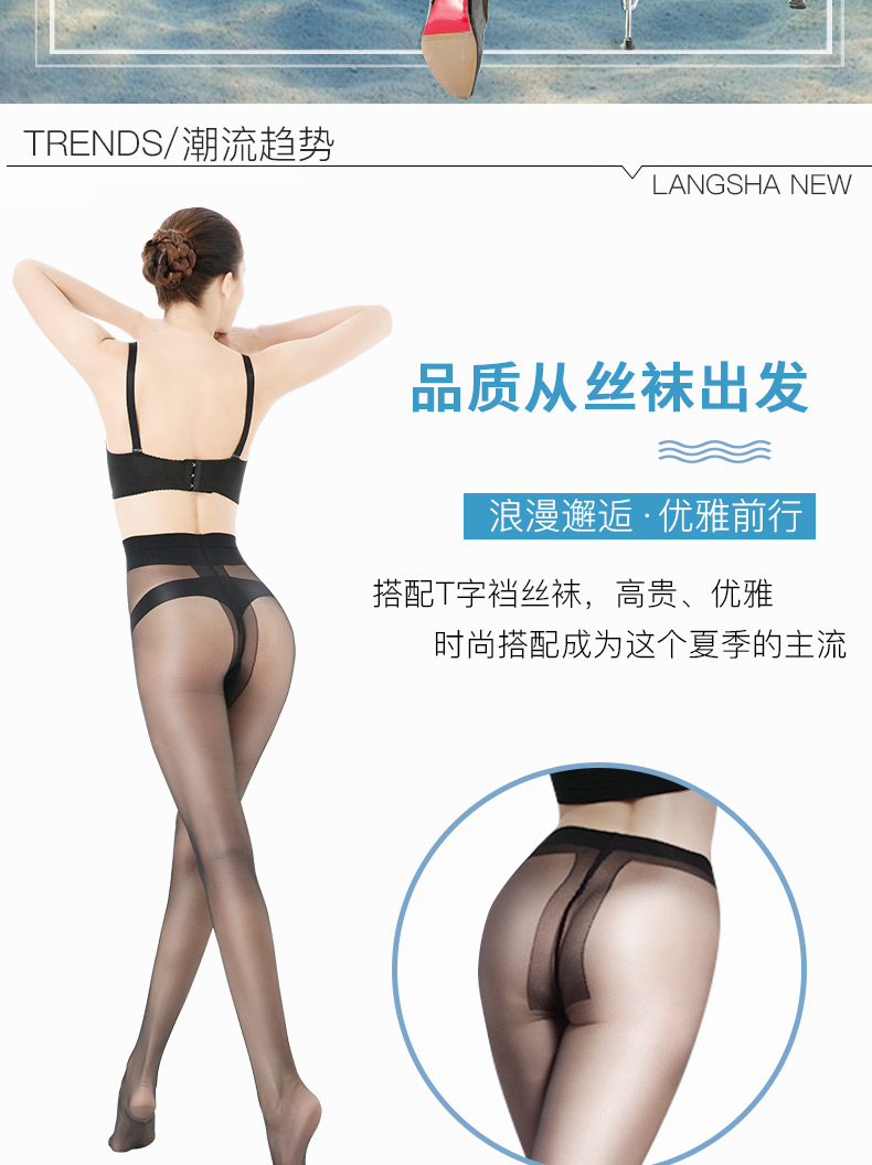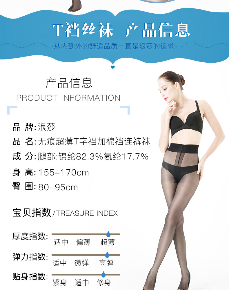 浪莎T襠絲襪女防勾絲 超薄款性感隱形無(wú)痕連褲襪 夏季黑絲襪