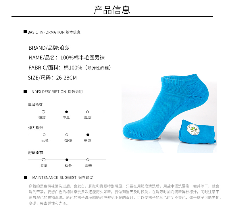 浪莎襪子 男士毛巾底船襪 純棉加厚地板襪運(yùn)動(dòng)短襪綠色