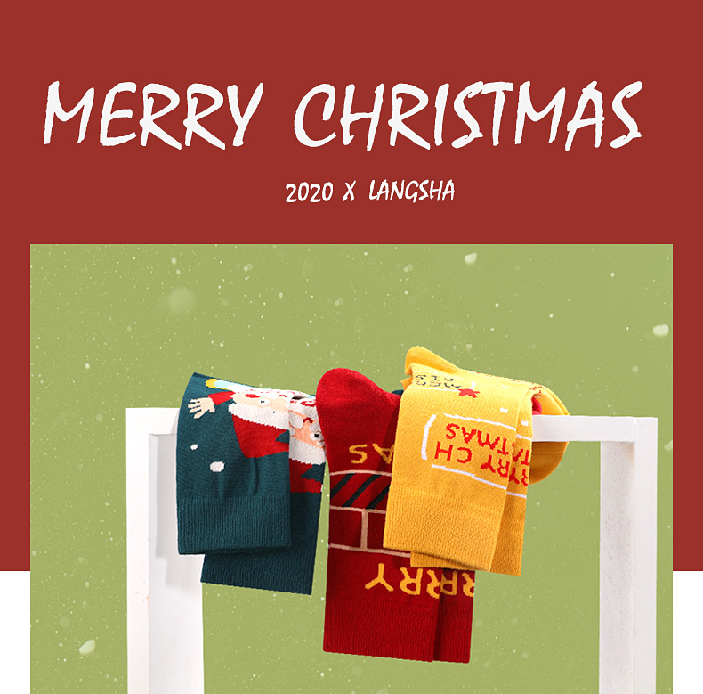 浪莎圣誕襪子女中筒襪秋冬季可愛本命年紅襪子圣誕節禮盒加厚棉襪